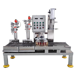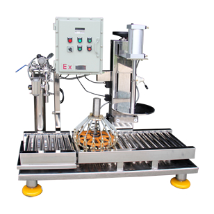 雙頭半自動灌裝機采用重量法計量,通過稱重傳感器輸出信號控制進料閥的開度以實現自動灌裝的目的。進料口前端配有進料泵或者原料儲罐加壓的方式將物料從罐體送至灌裝機,在灌裝前可以增加過濾裝置去除雜質,保證產品質量;該設備具有灌裝效率高、灌裝誤差小的優(yōu)點,在涂料、油墨、油漆、瀝青、膠水、潤滑油、石油化工、精細化工等行業(yè)有廣泛的應用,不僅適合流體的灌裝,同樣適合膏體產品的灌裝。