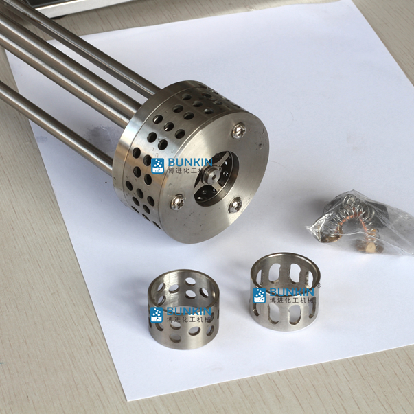 實驗室小型乳化機強勁的馬達進行高速旋轉使轉、定子之間形成真空,物料從轉、定子上部和底部吸入。強大動能使轉子產(chǎn)生極高的線速度,使物料在轉、定子間隙之間經(jīng)過強烈的撞擊、破碎、離心擠、液層摩擦、強力剪切之后飛射出去,在多種不同方向力的作用下,產(chǎn)生強大紊流。物料在適量乳化劑和成熟工藝下經(jīng)過一定時間反復循環(huán)解聚、分散、均質、細化、剪切產(chǎn)生穩(wěn)定乳狀液。
