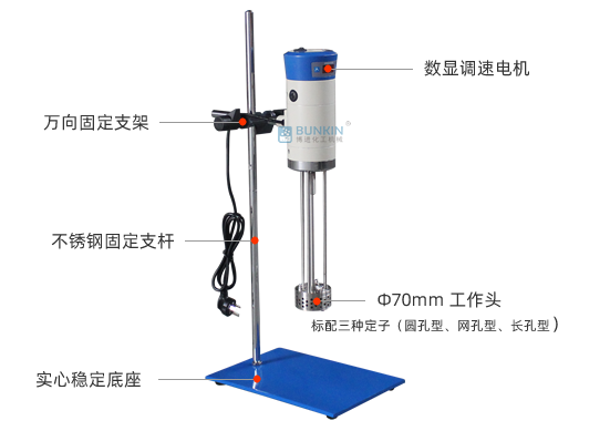 實驗室小型乳化機是為實驗室微量實驗而設計的一款實驗室設備。通過機械外力作用的方法使液-液、固-液物料顆粒粒徑變窄,使一種相均勻分布到另一種或多種相中,達到細化均質、分散乳化效果,從而形成穩(wěn)定的液-液、固-液分散體系的狀態(tài)。