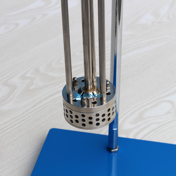 實驗室乳化機強勁的馬達(dá)進(jìn)行高速旋轉(zhuǎn)使轉(zhuǎn)、定子之間形成真空,物料從轉(zhuǎn)、定子上部和底部吸入。強大動能使轉(zhuǎn)子產(chǎn)生極高的線速度,使物料在轉(zhuǎn)、定子間隙之間經(jīng)過強烈的撞擊、破碎、離心擠、液層摩擦、強力剪切之后飛射出去,在多種不同方向力的作用下,產(chǎn)生強大紊流。物料在適量乳化劑和成熟工藝下經(jīng)過一定時間反復(fù)循環(huán)解聚、分散、均質(zhì)、細(xì)化、剪切產(chǎn)生穩(wěn)定乳狀液。