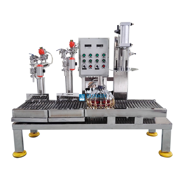 雙頭半自動(dòng)灌裝機(jī)采用重量法計(jì)量,通過(guò)稱(chēng)重傳感器輸出信號(hào)控制進(jìn)料閥的開(kāi)度以實(shí)現(xiàn)自動(dòng)灌裝的目的。進(jìn)料口前端配有進(jìn)料泵或者原料儲(chǔ)罐加壓的方式將物料從罐體送至灌裝機(jī),在灌裝前可以增加過(guò)濾裝置去除雜質(zhì),保證產(chǎn)品質(zhì)量;該設(shè)備具有灌裝效率高、灌裝誤差小的優(yōu)點(diǎn),在涂料、油墨、油漆、瀝青、膠水、潤(rùn)滑油、石油化工、精細(xì)化工等行業(yè)有廣泛的應(yīng)用,不僅適合流體的灌裝,同樣適合膏體產(chǎn)品的灌裝。