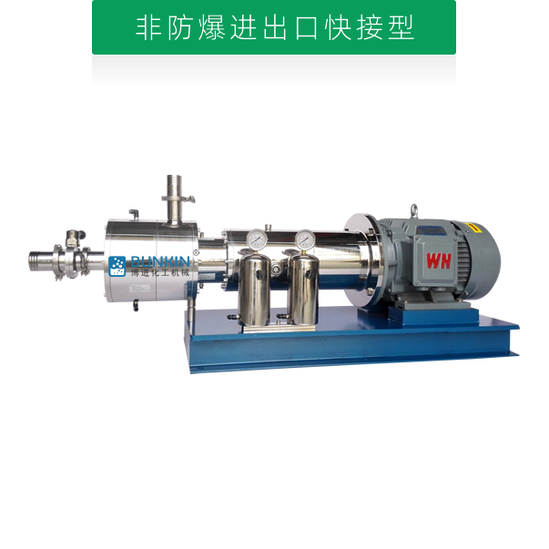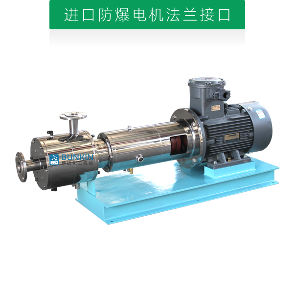 管線式三級(jí)乳化泵是連續(xù)式生產(chǎn)或循環(huán)處理精細(xì)物料的高速高效率乳化機(jī)。電機(jī)帶動(dòng)轉(zhuǎn)子高速運(yùn)轉(zhuǎn),通過(guò)機(jī)械外力作用的方法使液-液、固-液物料顆粒粒徑變窄,使一種相均勻分布到另一種或多種相中,達(dá)到細(xì)化均質(zhì)、分散乳化效果,從而形成穩(wěn)定的乳狀液的狀態(tài)。單級(jí)管線式高剪切乳化機(jī)前級(jí)可配置送料泵,對(duì)中高粘度物料有一定的適用性。設(shè)備噪音低,運(yùn)轉(zhuǎn)平穩(wěn),無(wú)死角,物料強(qiáng)制性通過(guò)分散、剪切的作用。具有短距離、低揚(yáng)程輸送功能?!井a(chǎn)品專利號(hào):ZL201820997023.8】