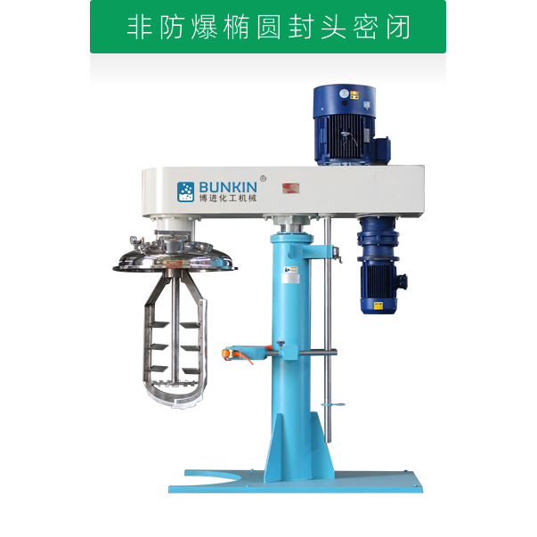 同心雙軸液壓分散機攪拌漿葉在動力機組的驅(qū)動下,沿固定方向旋轉(zhuǎn);在旋轉(zhuǎn)過程中,驅(qū)使物料做軸向旋轉(zhuǎn)和徑向旋轉(zhuǎn)。攪拌機內(nèi)的物料,同時存在軸向運動和圓周運動,因而同時存在剪切攪拌和擴散攪拌等幾種攪拌形式。在攪拌槳上裝有刮刀,緊貼桶壁刮拭,刮刀隨著攪拌器旋轉(zhuǎn)時把桶壁的物料完全刮掉,使桶壁無滯留料,同時提高混合效果。分散盤通過高速運轉(zhuǎn),使物料呈環(huán)狀流,產(chǎn)生強旋渦,呈螺旋狀下降到渦流底部。粒子間產(chǎn)生強烈的剪切撞擊與磨擦,達到迅速分散、溶解功能。攪拌盤通過圓周運動,產(chǎn)生較好的徑向作用里,加速物料循環(huán),提高分散效率,液壓升降攪拌機通過液壓泵工作驅(qū)動液壓柱塞升降,帶動整個傳動機構(gòu)和工作組升降。